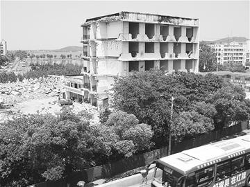 記者在現(xiàn)場(chǎng)看到,卓刀泉北路臨湖一側(cè)的拆遷廢墟上,高高豎著原省機(jī)械設(shè)備進(jìn)出口公司一棟宿舍樓!按髽莾(nèi)42戶居民搬走了41戶,獨(dú)一家賴(lài)著不走,待拆大樓直接影響了管線遷移、道路和樁基工程。”光谷投資有限公司該項(xiàng)目負(fù)責(zé)人王興昌焦急地說(shuō)。