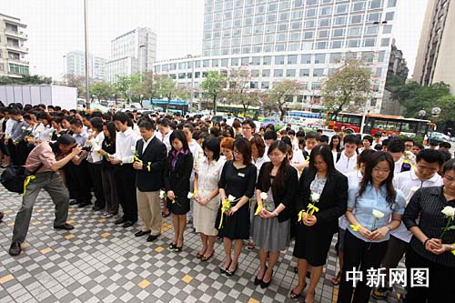 中新網(wǎng)廣州5月12日電 (記者 莫非 通訊員 楊明釗 黃永威 劉慧儀)由廣東多家新聞機(jī)構(gòu)和安利(中國(guó))公司主辦的“5.12大地震周年影像展”,已經(jīng)在廣州市解放北路以太廣場(chǎng)安利越秀店鋪門(mén)前展出了5天,5月12日下午14時(shí)28分,上千名廣州市民與安利志愿者自發(fā)來(lái)到周年影像展現(xiàn)場(chǎng)悼念地震受難同胞。