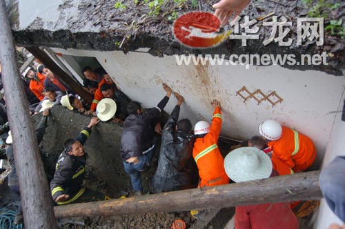 城口連日來普降大雨,葛城鎮(zhèn)東方紅一村54號一幢二層磚混結構民房房后堡坎被雨水沖泡,發(fā)生了坍塌。坍塌的堡坎瞬間將民房壓垮,臥室里正在睡覺的兩人被埋壓在橫七豎八的預制板下。
