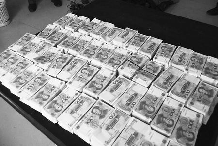5月11日下午6時許,民警把兩名犯罪嫌疑人王某和趙某(系羅某次子)抓獲,在兩個編織袋中共起獲HB90版百元面值假幣250萬元。