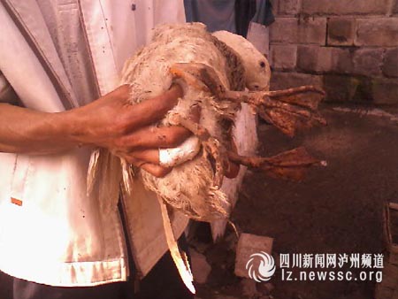 王智昇,家住納溪永寧河邊,是納溪第一個(gè)吃低保的特困戶,平常以養(yǎng)鴨子為生,因他家中出現(xiàn)一只與鴨不同的鴨,該鴨全身白色,初見(jiàn)時(shí)不細(xì)看,未發(fā)現(xiàn)有何不同之處,經(jīng)過(guò)仔細(xì)觀察后發(fā)現(xiàn),該鴨確實(shí)與眾鴨不同,原來(lái)這只鴨子有四只腳,兩腳在地上行走,另外兩只腳隱藏在靠近尾部的背上,時(shí)隱時(shí)現(xiàn),待主人將鴨子抱起,弄開尾部羽毛,才露出廬山真面目,隱藏的兩只腳清晰可見(jiàn),形狀與行走的兩只腳沒(méi)有什么差異。區(qū)別僅僅是由于隱藏的兩只腳未進(jìn)行功能鍛煉,行走只是顯得略微小心。