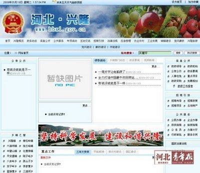根據網帖中提供的網址,記者昨日順利打開了“史上最雷人最詭異的政府網站”。網站首頁頂端標有“河北·興隆”的字樣。瀏覽器地址欄顯示網站域名屬于政府類網站,網址為:。