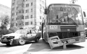 記者趕到現(xiàn)場看到,兩車均并排打斜停在十字路口中間,傷者已被“120”急救車送往醫(yī)院救治,交警正在事故現(xiàn)場進行勘察。出租車左側(cè)車輪以及車體被撞變形,112路公交車前部車體被撞壞。40分鐘后,交警部門調(diào)來一輛拖車將事故車輛拖離現(xiàn)場,此路段交通才恢復(fù)正常。