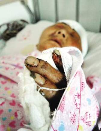 在南京軍區(qū)總醫(yī)院的一張病床上,記者見到正在輸液的李步琴老人,她頭部、手部纏著厚厚紗布。記者了解到,不連頭上的傷,老人手指、鎖骨、肋骨五處骨折,還餓了4天,老人現(xiàn)在已經(jīng)恢復(fù)了神志,思維敏捷,不能不說是個(gè)奇跡。老人告訴記者,5月19日傍晚她和工程隊(duì)開挖土機(jī)的吵了一架,因?yàn)樗麄兺趬牧俗约旱牟说亍.?dāng)天晚上8點(diǎn)多鐘,突然有個(gè)人沖進(jìn)她居住的泵房,進(jìn)門就跟她要錢。剛開始她以為遭遇劫匪,無奈之下,只好從口袋里掏出一張皺巴巴的百元鈔票,可對(duì)方拿到錢后,仍不罷休,竟然揚(yáng)言要火燒房子。還不問青紅皂白,甩起一根棍子就朝她頭上夯,她雙手抱住頭,棍棒繼續(xù)擊打在她的頭上、身上,直到她昏死過去。老人居住的地方?jīng)]有水電,因此當(dāng)時(shí)光線黑暗,她沒有看清楚對(duì)方什么樣子,但是她記得對(duì)方毆打她的時(shí)候曾經(jīng)問過她:“以后還給不給開路?”這個(gè)“開路”是什么意思?老人解釋說,她的菜地占了挖掘機(jī)的路,她曾經(jīng)與對(duì)方交涉過多次。
