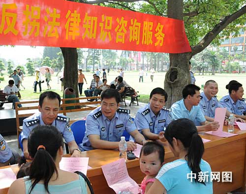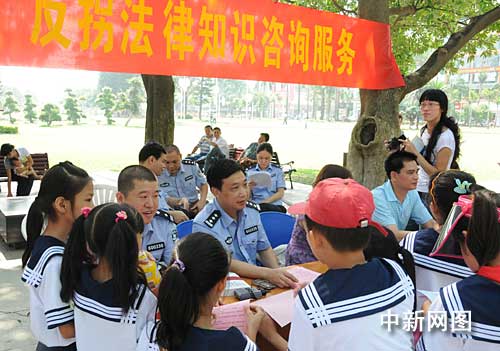 在北部灣廣場,北海市公安局?jǐn)[設(shè)的“反拐”法律知識(shí)咨詢服務(wù)臺(tái)前,一群小朋友把桌子團(tuán)團(tuán)圍住,就有關(guān)防拐知識(shí)認(rèn)真的向民警咨詢起來。小朋友的問題貼近實(shí)際,民警的回答則詳細(xì)易懂。通過交流,民警將一些易于操作、實(shí)際效果明顯的反拐知識(shí)教授給小朋友們。