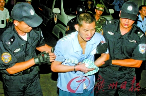 杜秋發(fā):沒(méi)有。過(guò)去我們從審訊他的同伙中知道成瑞龍雖然六親不認(rèn),但心里還是牽掛自己的兒子的,當(dāng)我們問(wèn)他有什么要求時(shí),他回答說(shuō):“我最關(guān)心我仔,希望能見到他!蔽耶(dāng)時(shí)就說(shuō):“等回到佛山,他們會(huì)盡量安排你們見面的,而且我們看到你兒子了,長(zhǎng)得很高大很帥!彼那榫w很快就恢復(fù)平靜,對(duì)殺害佛山民警案件供認(rèn)不諱,后來(lái)一路押解回來(lái)也很順利。