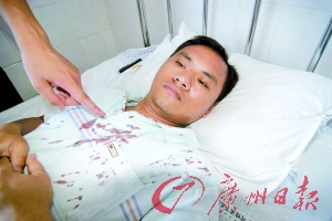 昨日,記者在化州人民醫(yī)院外二科見到了正在這里療傷的受傷教師。其中一名黃老師告訴記者,當(dāng)時(shí)他與李老師等人負(fù)責(zé)在校門口值守,突然聽到李老師“你們想干什么?”的喊聲后,發(fā)現(xiàn)歹徒正揮棍朝李老師猛打,他即沖上去試圖阻止,結(jié)果頭部被打了一棍而昏倒地上。