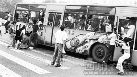 昨日上午8時(shí)左右,一輛8路空調(diào)車駛至成都萬年場公交站時(shí),有位女乘客突然尖叫,車上大約60名乘客頓時(shí)慌作一團(tuán)。司機(jī)迅速將車停靠路邊并打開車門,但仍有乘客打碎玻璃從車窗跳下“逃生”,1分鐘不到所有人全部逃離車廂。事后證明只是虛驚一場,所幸沒有造成人員傷亡。