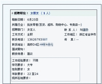 記者注意到,湯云在招聘網(wǎng)上留著的是朋友的名字和自己的號(hào)碼,“主要是感覺(jué)有點(diǎn)害羞!睖普f(shuō)。