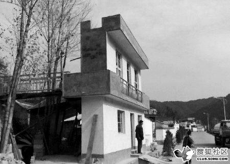 發(fā)帖者稱,“在河南省欒川縣叫河鄉(xiāng),一個建筑格外顯眼,就在公路旁邊,猛一看是兩層小樓,墻壁還刷得白白的,孰不知這棟樓深度只有1.5米左右,為了配合‘新農(nóng)村建設’建新房,可農(nóng)民又沒錢蓋‘真樓房’,就只有這樣做了!