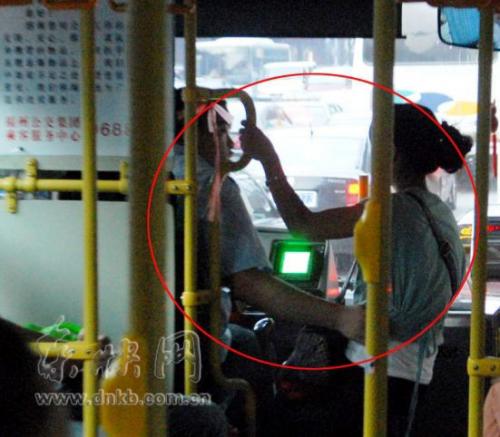 今天下午5時(shí)許,記者在福州連江南路四十中公交站登上了一輛76路公交車。公交車在往前行駛了大約10分鐘后,一年輕女子上了公交車,便一直站在公交司機(jī)邊上,二人開始聊個(gè)不停。