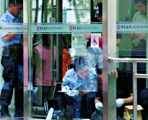 事發(fā)中國銀行位于北科大籃球場西側(cè),高兩層,分為對(duì)私業(yè)務(wù)區(qū)和基金業(yè)務(wù)區(qū)。昨日中午12時(shí)10分許,顧客王明(化名)進(jìn)入該行準(zhǔn)備提款!叭抛簧献奈鍌(gè)顧客,兩個(gè)開放的銀行窗口前各有人在辦業(yè)務(wù)。”王明說。