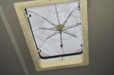 近日,網(wǎng)友在大渝網(wǎng)上發(fā)帖《公交車內(nèi)雨傘遮頭》,該網(wǎng)友稱,前幾天出門,自己上了一輛373路公交車,剛一坐到位置上,頓時被雷倒了。他稱,公交車上的天窗竟然變成了一把雨傘,雖然有點夸張,倒也還算密不透風(fēng)。該網(wǎng)友笑稱:“這一定是重慶新發(fā)明的天窗,方便在車子燃燒的時候逃生!