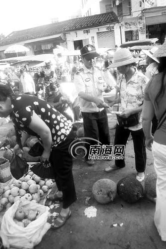 然而,負責(zé)市場管理的縣城建監(jiān)察人員不僅不制止亂擺攤行為,而且向這些攤位收了錢后就聽之任之。吳先生說:“定安縣政府發(fā)布《通告》禁止亂擺亂放,這些人還敢這樣違背政府的工作要求,我不知道這到底是為什么?”