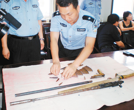 原來,今年33歲的楊某家境貧困,2005年,楊某29歲時才結(jié)婚。當(dāng)時妻子離過婚,還帶一個孩子,兩人生活了兩個月就離婚了。今年5月,通過婚介,楊某認(rèn)識了王某,這讓楊某對生活重新燃起了希望,楊某還為對方花去了近2000塊錢。然而兩個多月后,王某以楊某脾氣暴躁等為由,提出中斷兩人的關(guān)系,這讓楊某難以接受。7月11日凌晨,兩人在楊某家發(fā)生爭吵,王某再次提出分手,喪失理智的楊某拿出手槍威脅王某。昨日,提起案情,余下派出所所長沈雪源并不輕松,“槍里只是裝了些火藥,幸虧沒子彈,要不然后果不堪設(shè)想!(文/圖記者張志杰 實習(xí)生梁鋒 李文彬)