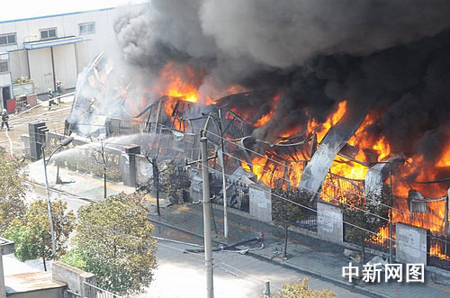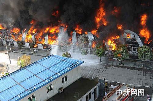 據(jù)初步調(diào)查,起火建筑為七字型二層鋼結(jié)構(gòu)倉庫,主要存放塑料廢品和一些半成品筆等物,過火面積約3000平方米,無人員傷亡。