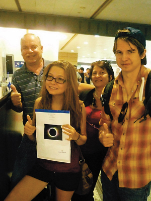 加拿大籍旅客羅伯特帶領(lǐng)全家六口來(lái)中國(guó)觀看日全食奇景。他在辦好入境手續(xù)后告訴邊檢民警:他和4個(gè)孩子都是天文愛(ài)好者,去年9月就定好了酒店,這次專(zhuān)程帶放假的孩子來(lái)觀看“日全食”。