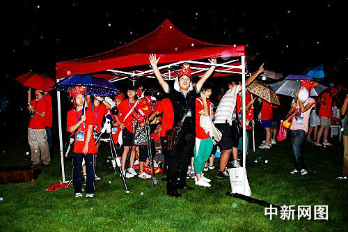 烏克蘭日全食觀測隊、俄羅斯觀測隊、北京日全食觀測隊……各個隊伍在雨中緊張地等待著,現(xiàn)場的喇叭里不斷傳來其他觀測點的最新消息,然而8:22分初虧的時刻到來時,雨未停。終于9:35,日全食的一刻天全部黑了下來,雖然看不到,但現(xiàn)場還是響起了持續(xù)不斷的歡呼和尖叫聲,五分鐘的時間里,黑暗的山坡上閃關(guān)燈不斷,儼然一個“巨星演唱會”的陣勢。