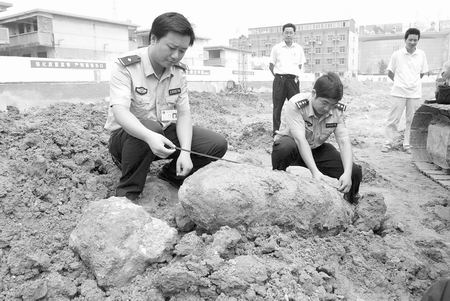 大河報 記者杜文育通訊員陶華鳴文圖訊“好家伙,是一枚大炸彈!”7月25日,在許昌市南關(guān)大街南段一工地上,一輛挖掘機正在進行挖掘地基作業(yè),隨著一聲金屬與金屬撞擊的聲響,一枚沒有引爆的大炸彈赫然出現(xiàn)在眼前,人們急忙報警。