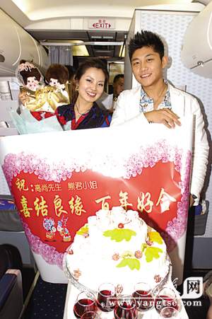 7月25日下午4:00,東航江蘇公司南京—北京的MU2831航班上演繹了一場(chǎng)長(zhǎng)達(dá)15分鐘的空中求婚儀式。英俊帥氣的北京小伙子高尚先生和年輕貌美的南京姑娘熊君小姐無疑成了當(dāng)日航班上最幸福的人。