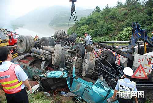 中新網(wǎng)金華7月29日電(記者 江耘 通訊員 高輝 鄒寧浩) 7月29日4時47分,在浙江金麗溫高速公路金華與武義交界處發(fā)生了一起交通事故,一輛大掛車沖斷護(hù)欄翻到對面的車道。事故造成了兩人死亡一人受傷。