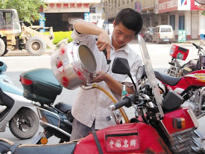 網(wǎng)友“墜入情海”在帖子中稱,該加油站位于開縣移民新城南山中路!白钆5木褪怯靡粋大水壺給摩托車加油”。加油站準備了幾個大水壺,壺嘴上都安上一節(jié)水管,每個水壺連壺蓋都沒有。摩托車司機需要自己拿水壺到加油機前打油,加油站工作人員也不管。發(fā)帖者說:“汽油是一種很容易揮發(fā)的物質(zhì),但壺口是敞開的,在加油過程中,大量的汽油極易揮發(fā)出來,加油站彌漫著一股刺鼻的汽油味道,存在著嚴重的安全隱患。”