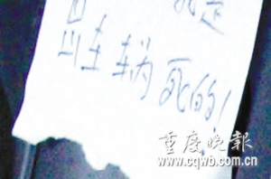 江北CBD、重慶市大劇院右側空壩,時常有人駕車到此游玩。昨日下午,一妙齡女子被發(fā)現橫尸于空壩上停放的一輛小轎車內,該車內排擋桿旁還有一張神秘紙條,上面寫著“我是出車禍死的!睋繐粽叻Q,這輛小車在此處停了有3天。