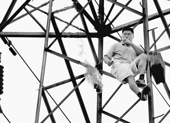 他想要演一場秀,就像不少人做的那樣,爬上鐵塔或者高樓,以一種極端的方式引起人們的關(guān)注。他這么做的目的是為了討要人家欠的工程款。
