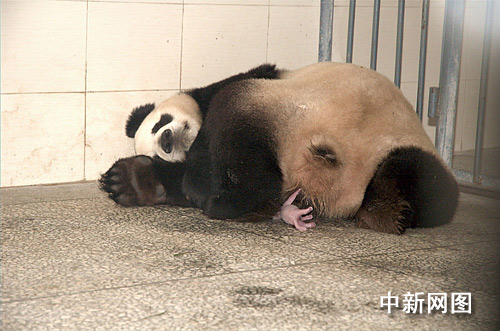 7日晨6點46分,“甜甜”開始出現(xiàn)產(chǎn)前征兆,8點13分破羊水,在經(jīng)過3個多小時的努力后生下一對健康的雙胞胎。初次當媽媽的“甜甜”努力嘗試將寶寶叼在懷里,但小仔亂動亂叫,很快又滑落到了地上,經(jīng)過多次努力,小仔終于在媽媽懷里安靜下來,“甜甜”用舌頭輕舔著寶寶的身體,儼然是位稱職的母親。產(chǎn)下第二仔以后,工作人員隨即將第一仔取出送往育嬰室進行人工育幼,經(jīng)初步檢查,該寶寶是雄性,體重146.2克,各項身體指標正常。