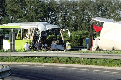 昨天下午5點(diǎn)左右,在京承高速黃港出口附近,一輛從懷柔駛來的916路公交車,與一輛運(yùn)水貨車追尾,事故造成公交車上20多人受傷。
