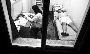昨日凌晨,北醫(yī)三院急診大廳內(nèi)擠滿了身穿“北京郵電大學(xué)”服裝的輸液學(xué)生。