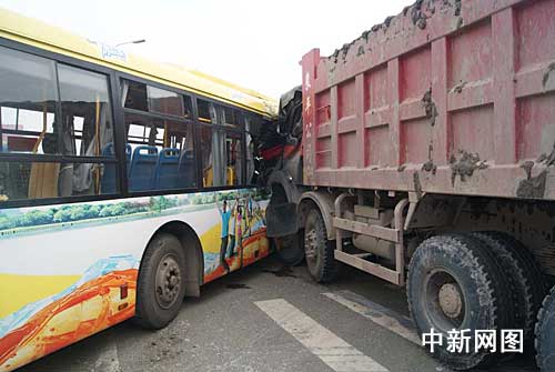 中新網(wǎng)寧波8月16日電(見習記者 何蔣勇 沈文劍 通訊員 來明)今天中午12時28分,浙江省寧波市江東消防大隊接到市消防支隊119指揮中心指令,稱位于江北路林市場門口發(fā)生一起重大交通事故。一輛車牌號為浙B27696的大型工程車攔腰撞上了一輛滿載乘客的公交車,工程車車體嚴重變形。事故造成公交車上十余名乘客不同程度受傷,且有一名被困乘客傷勢嚴重,急需救援。接到報警后,大隊迅速出動2輛消防車,14名指戰(zhàn)員火速趕赴現(xiàn)場處置。