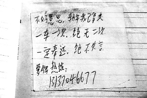 6月12日早上,洛陽(yáng)市公安局澗西分局第一責(zé)任區(qū)刑警隊(duì)接到幾名出租車(chē)司機(jī)報(bào)案,稱他們的出租車(chē)牌照夜晚被盜,并且每輛車(chē)上都發(fā)現(xiàn)一張紙條,上面寫(xiě)著:“撿到貴車(chē)牌,聯(lián)系電話1××××××××××,誠(chéng)信是金!彼麄兇螂娫掃^(guò)去,接電話的男子要求他們往一張銀行卡上各打進(jìn)100元,然后就告訴他們車(chē)牌在哪里。