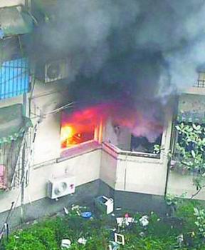 成都消防3、4中隊(duì)的消防車呼嘯趕來(lái)。因?yàn)檫^(guò)道太窄而且停滿了汽車,消防車進(jìn)不了大院,只得將水管從大門(mén)外拉進(jìn)起火的單元滅火。10多分鐘后,大火終于被撲滅。