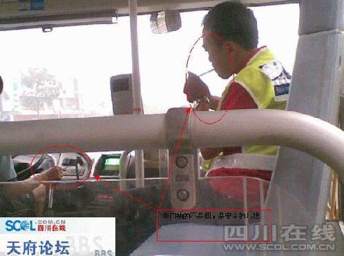 成都一公交司機車內(nèi)吸煙被停職 安全員被辭(圖)