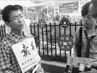 昨日,被網(wǎng)民稱為“史上最牛乞丐”的夏海波,前胸掛著賣書招牌,后背貼著“行乞告白”,站在武廣門前簽售他的15萬字小說《乞討日記》。市民紛紛掏錢購買,并請他在書上簽字“留念”。
