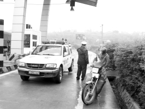 “摩托車不能進入高速路喲!”昨天上午11時10分,長涪高速涪陵站(長涪高速30.5km)入口,一輛摩托車準備駛入高速路,被正在進行入口檢查的七大隊執(zhí)法隊員牟龍云、余浩洋發(fā)現(xiàn)并攔下?删驮趫(zhí)法人員對其勸說時,摩托車駕駛員突然加起油門,通過收費站下道口的欄桿空隙,強行闖入長涪高速路,并逆向行駛在超車道上。