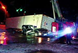 昨日凌晨2時(shí)15分許,順義區(qū)通順路米各莊路口,一輛集裝箱式大貨車與一輛商務(wù)轎車相撞后側(cè)翻,將轎車壓在貨箱下。事故導(dǎo)致轎車中6名乘客死亡,1名乘客受傷。目前,市政府、市公安局等已介入調(diào)查。