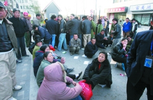 昨天中午,為討薪,圍堵(北京市)大興區(qū)世嘉博苑小區(qū)大門(mén)已兩天的300余名建筑工人,開(kāi)始向小區(qū)內(nèi)投擲磚頭,并欲強(qiáng)行沖入小區(qū)。開(kāi)發(fā)商雇用的保安也動(dòng)用水槍向工人們噴射。