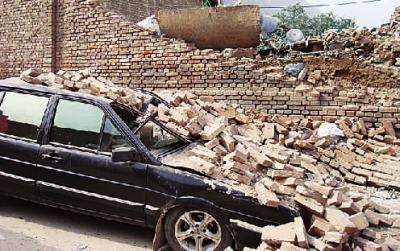 車主陳女士告訴記者,她和丈夫在附近居住,為方便外出辦公,他們前段時間買了一輛桑塔納轎車。由于周圍沒有停車場,無奈之下他們只好將車停在離家不遠的巷道里。20日上午,她和丈夫出門辦事,快走到車跟前時,只聽到“轟”的一聲,轎車旁邊的一堵高墻突然倒塌,砸在轎車上,大量磚塊瞬間將轎車“掩埋”!懊控参叶及衍囃T谶@里,沒想到今天這么倒霉,讓墻把車給砸了!标惻繃@氣道。
