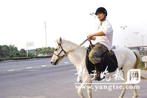 近日,常州北郊的馬路上發(fā)生了一件怪事:附近一家企業(yè)的一名年輕員工經(jīng)常騎著一匹高頭大馬上下班。對(duì)此,當(dāng)?shù)亟谎簿块T(mén)昨日表示,目前沒(méi)有法律明令禁止馬匹不能上路,但為了安全起見(jiàn),最好不要效仿。