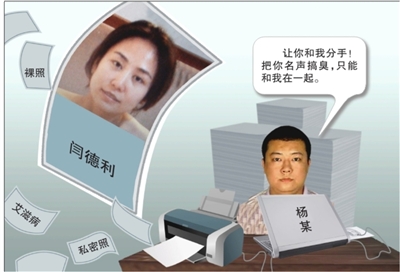 今年6月,閆德利提出分手。楊某不同意,對(duì)其百般糾纏,但遭到了閆德利的拒絕。8月初,楊某從中關(guān)村專(zhuān)門(mén)購(gòu)買(mǎi)了筆記本電腦、上網(wǎng)卡、打印機(jī)、塑封機(jī)等設(shè)備,接下來(lái)便是打印散發(fā)與閆德利同居時(shí)的私密照,開(kāi)博捏造事實(shí),公布“嫖客”電話(huà)號(hào)碼……成為掀起軒然大波的“艾滋女”事件的始作俑者。