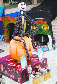 沈陽中街的一個大型商場,“鬼怪”儼然變成促銷手段,“恐怖屋”、“整蠱屋”、“挑戰(zhàn)僵尸競技場”悉數(shù)亮相。記者看到,促銷員都身著長及腳面的黑袍,從脖子到小腿處是一副完整的白骨圖案。冷不防一看,挺嚇人的。