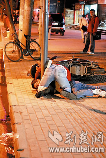 公汽?咳就獾年惣覟痴竞,紅衣男子再次與司機(jī)理論起來(lái)。他將司機(jī)拉下車,二人發(fā)生肢體沖突。扭打中,紅衣男子將司機(jī)按倒在地一頓毆打(如圖)。