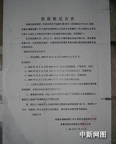 在10月16日由承德市城鎮(zhèn)面貌三年大變樣總指揮部辦公室以及承德市房屋拆遷辦公室印發(fā)的《房屋拆遷公告》明確顯示:10月16日至10月20日為老行政中心房屋產權調查摸底、產權核實、評估階段,并由“承德市三年大變樣辦公室舊行政中心拆遷工作組”實施拆遷。而金源公司于10月18日就開始強行拆除皇家安裝工程公司辦公用房。