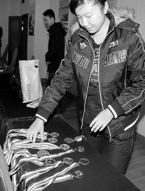 “我是國家二級運動員,曾獲得2007年正超杯全國傳統(tǒng)武術交流大賽女子BC組拳術和器械的兩個一等獎;首屆張三豐全國武當武術精英邀請賽棍術、自選刀、自選拳三個第一名,其余省市一級的金牌還有很多,我今天只帶來了11塊金牌,銀牌等都沒有帶來!”