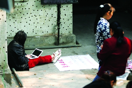 前日,網(wǎng)友“壞豬”在大渝網(wǎng)新聞報(bào)料吧上,以《史上最拉風(fēng) 收廢品女》為名發(fā)帖報(bào)料!皦呢i”在帖子中稱,前日上午,他剛好從該居民樓前經(jīng)過(guò)時(shí),隱約看到樓梯口有一黑影,轉(zhuǎn)頭查看,眼前的景象將他雷得“外焦內(nèi)嫩”:一身穿黑衣的女子,背靠墻壁席地而坐,身前放著一個(gè)寫(xiě)有“專業(yè)回收”的廣告布,她對(duì)過(guò)往市民毫不理會(huì),而是專心敲打放在其大腿上的筆記本電腦!拔疫從來(lái)沒(méi)看到過(guò)哪個(gè)收廢品的有這個(gè)女的這么潮!太拉風(fēng)了噻”。