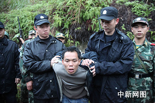 近400名的武警、公安民警以及干部群眾冒著蒙蒙細(xì)雨,分成40多個小組,形成合圍之勢,立馬展開拉網(wǎng)式的搜山行動。經(jīng)過兩個小時的圍山搜捕,16時57分,犯罪嫌疑人石順兵在“大紅山”的最高處的草叢中被搜山的武警戰(zhàn)士抓獲。