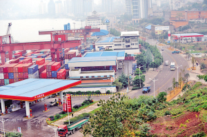 而真正被笑稱為“國內(nèi)最牛加油站區(qū)域”的地段還不在此,是圍繞在客運西站1公里范圍內(nèi)所建起的4座加油站。記者驅車由入城的迎賓大道出發(fā),前往涪陵客運西站所在的區(qū)域,沿途首先進入視線的是一座正在營運的大通加油站;行駛200多米后,是另一座長江加油站,在經(jīng)過這緊鄰的兩座加油站后,便進入圍繞客運西站所建的四座加油站區(qū)。