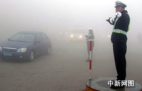 中新網(wǎng)新鄉(xiāng)11月26日電(記者吳揚 通訊員牛國平)昨日一場入冬以來最大的濃霧突降中原大地,河南省新鄉(xiāng)市交巡警支隊及時啟動惡劣天氣下的交通安全管理預案,全市千余名交警冒著濃濃大霧迅速出警,守護在市區(qū)和主干公路的大路口上,指揮和疏導了數(shù)萬輛過境機動車輛安全通行。